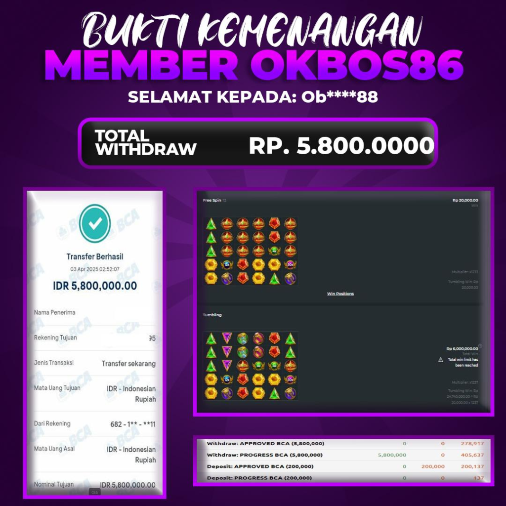 Setiap hari, banyak pemain meraih kemenangan besar di OKBOS86. Berikut ini salah satu bukti kemenangan terbaru: