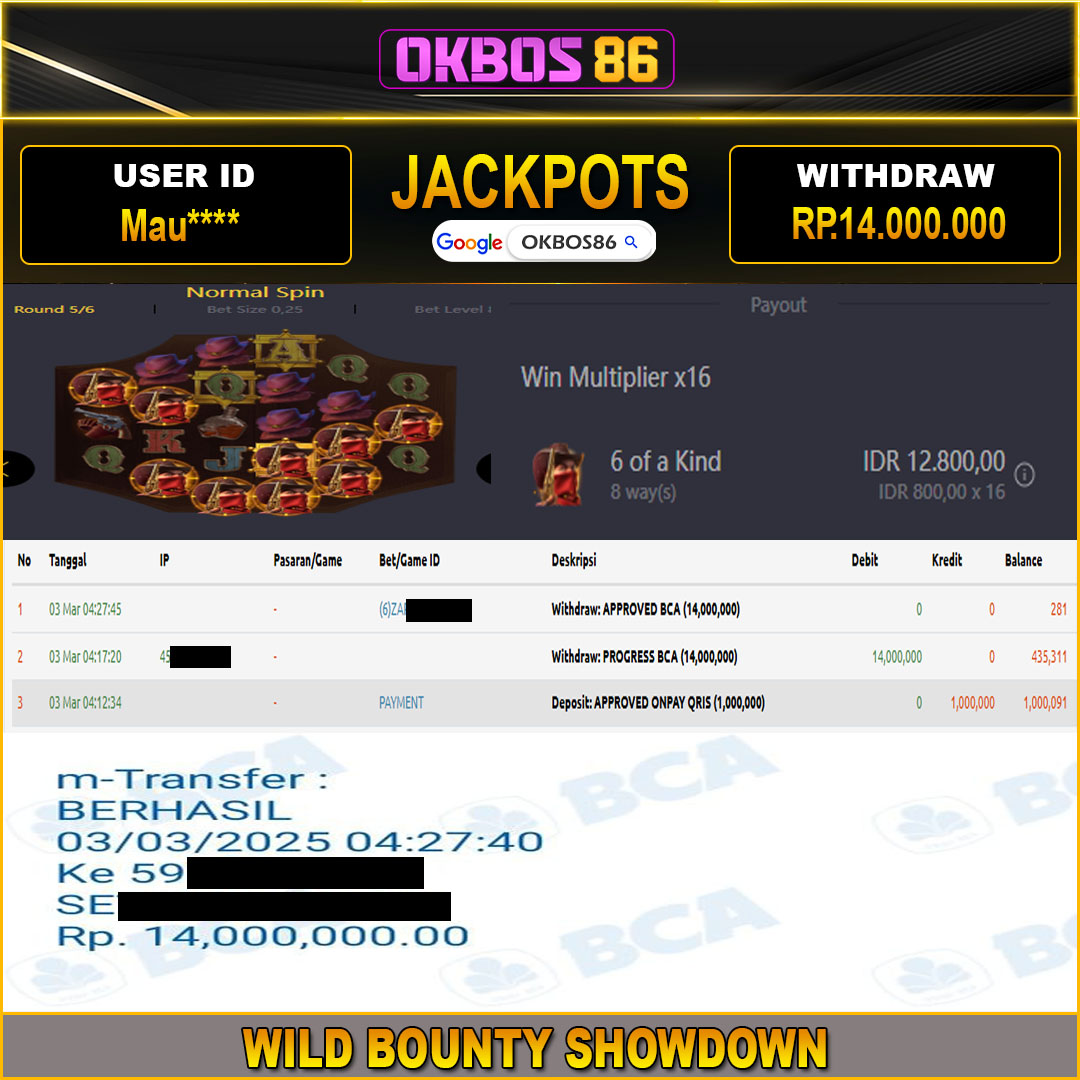 Jackpot Slot Wild Bounty Showdown – Bukti Kemenangan OKBOSJP