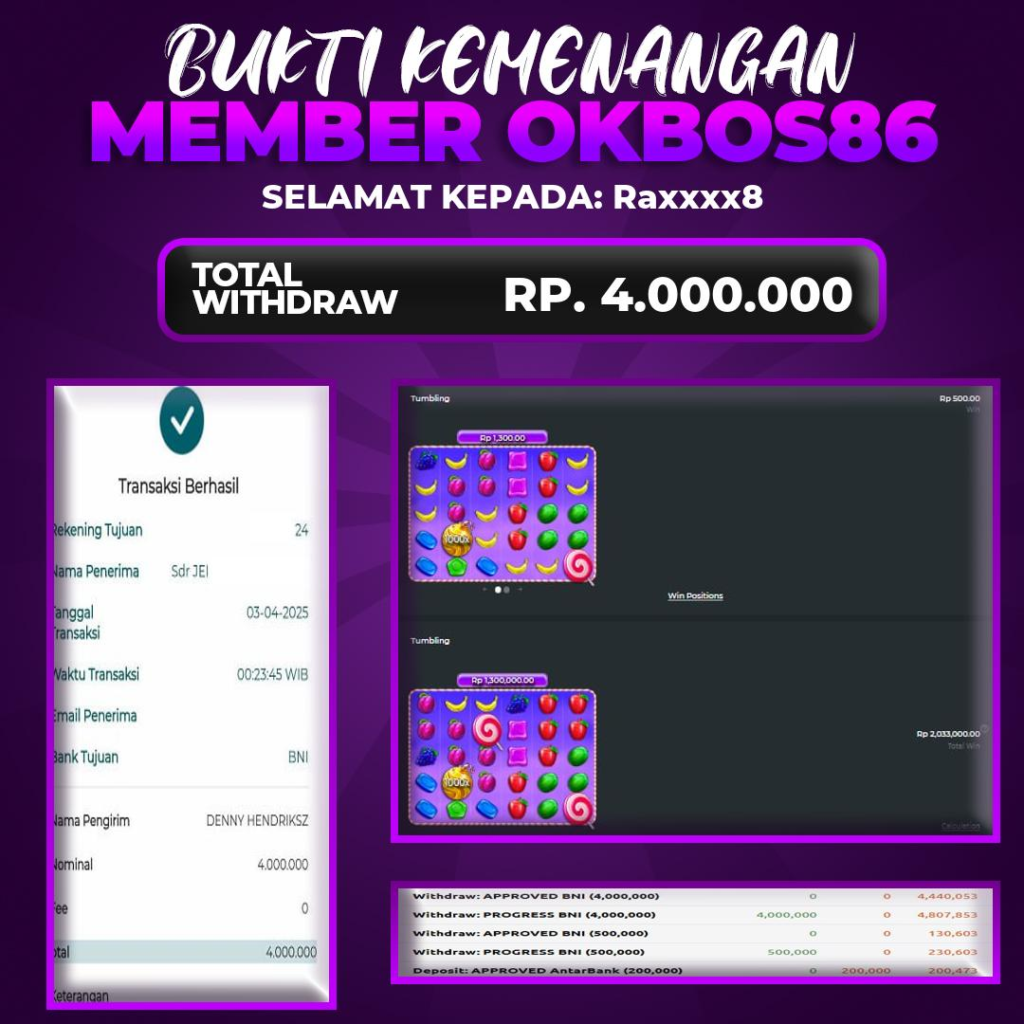 Setiap hari, banyak pemain meraih kemenangan besar di OKBOS86. Berikut ini salah satu bukti kemenangan terbaru: